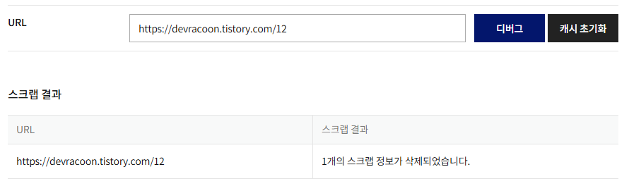 URL을 확인하고 캐시 초기화 버튼을 누릅니다.